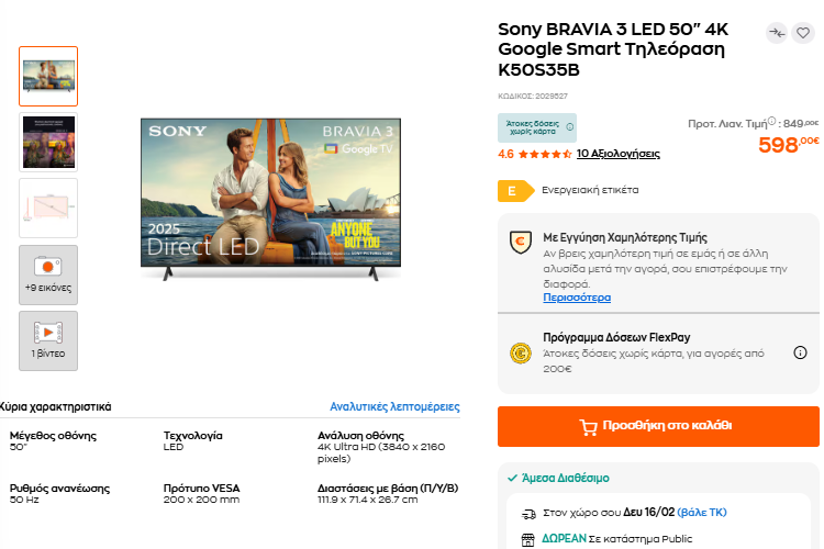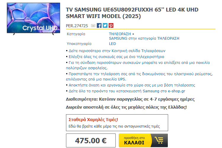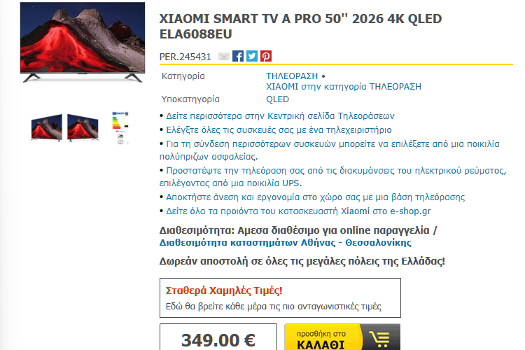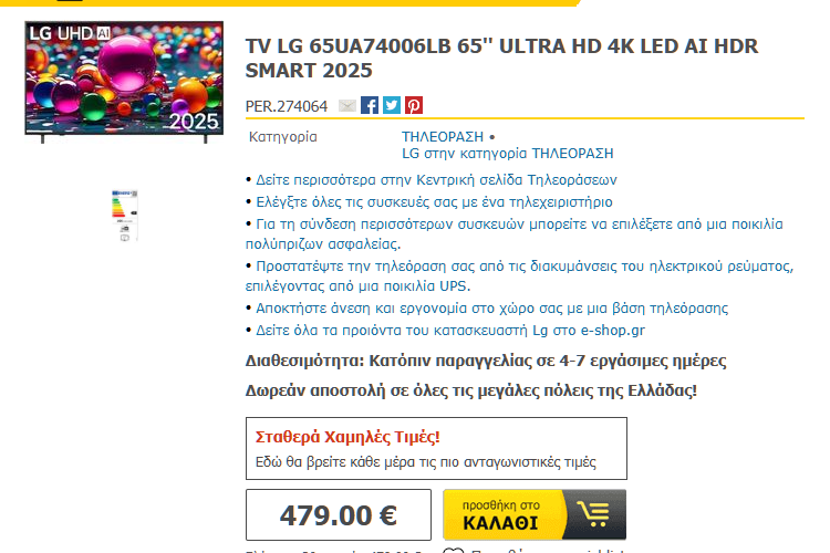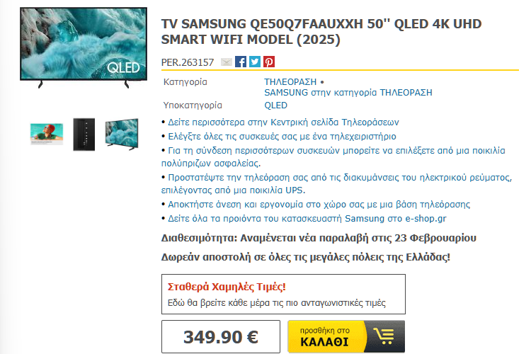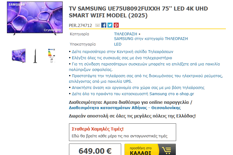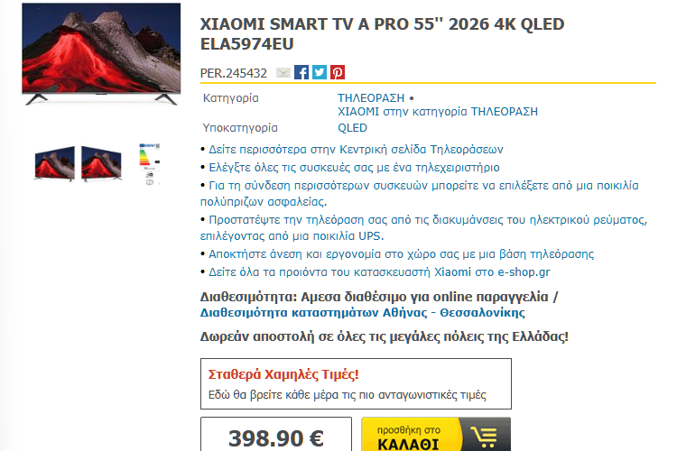 Για τη δική σας ευκολία, αλλά και για την καλύτερη διαθεσιμότητα των προϊόντων, στον οδηγό περιλαμβάνουμε προτάσεις για την αγορά τηλεόρασης από το kotsovolos.gr, το e-shop.gr, και το public.gr.