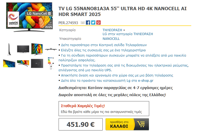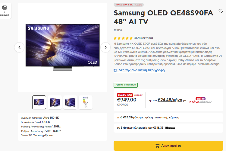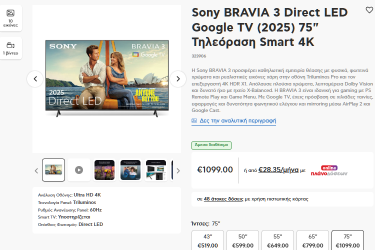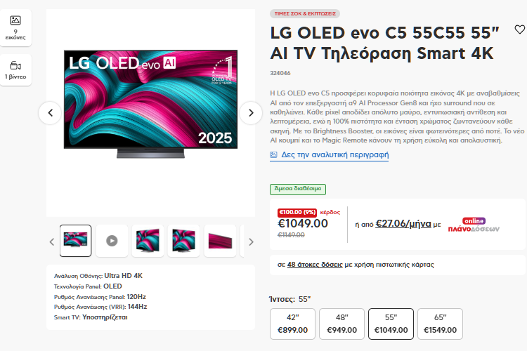 Και όμως, χάρη στη μείωση των τιμών στη συνολική τεχνολογία των οθονών, μπορούμε να έχουμε 55 ίντσες από 349 ευρώ, και 60 ίντσες από 529 ευρώ.