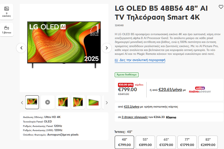 LG OLED B5 48B56 48″ AI TV Τηλεόραση Smart 4K