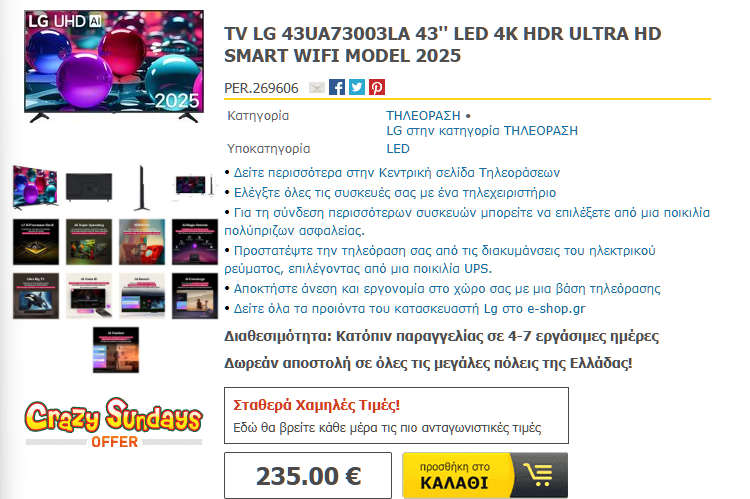 43″ €235,00 LG UHD, HDR, Smart TV (2025)