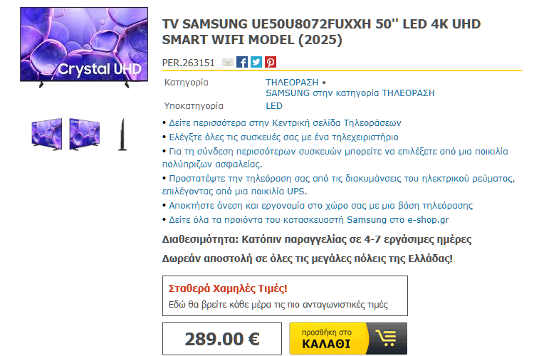 43″ €269,00 Samsung 4Κ, Smart TV (2025)