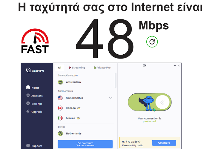 Το Atlas VPN είναι η πρόταση μας καθώς πρόκειται για μια υπηρεσία που εντυπωσιάζει με την ταχύτητα του VPN στη δωρεάν έκδοση, και ακόμη περισσότερο στην πληρωμένη.