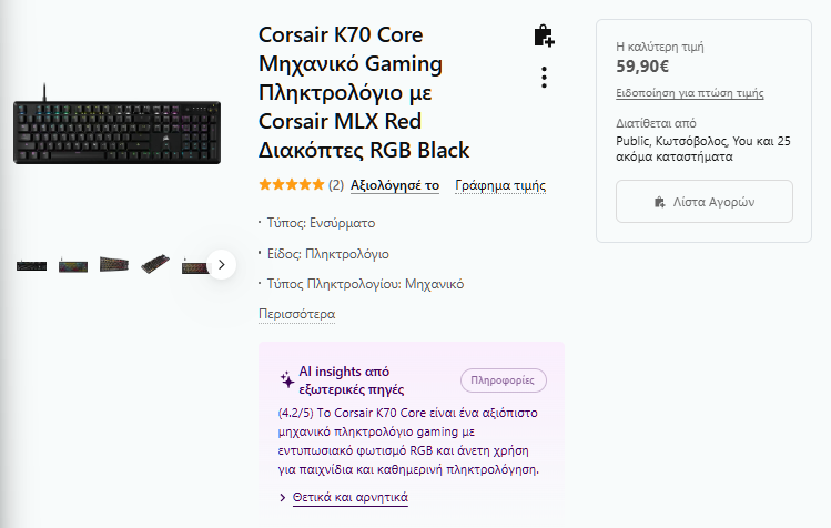 - Corsair K70 TKL / K70 Core: Best value TKL με σταθερό σασί, PBT keycaps, πολύ καλό latency·