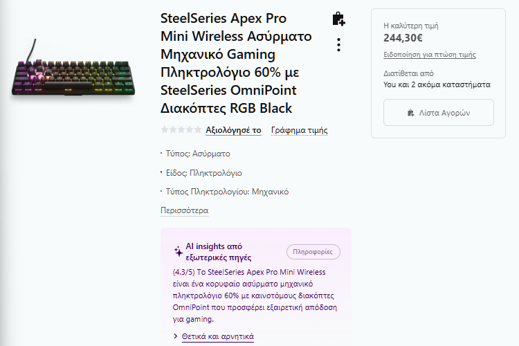 - SteelSeries Apex Pro Mini: Ρυθμιζόμενη ενεργοποίηση/ reset per key· compact για χαμηλά sens και ανταγωνιστικό παιχνίδι.