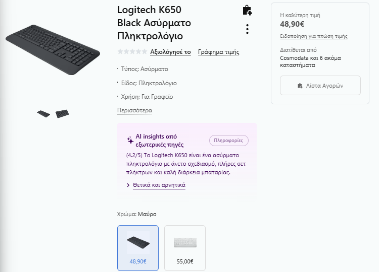 - Logitech Signature K650: Ήσυχο (rubber dome), άνετο για shared χώρους/σπίτι πολύ καλό value