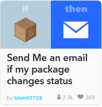 6. Δεχόμαστε ένα email όταν το δέμα που περιμένουμε αλλάξει κατάσταση. https://ifttt.com/recipes/69107