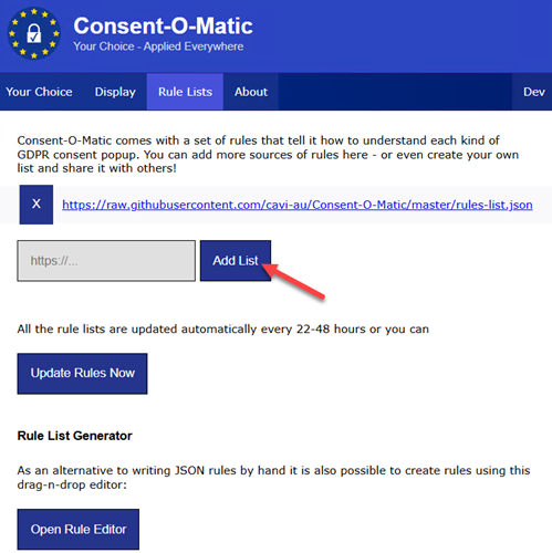 Για όσους επιθυμούν ακόμα μεγαλύτερο έλεγχο, το Consent-O-Matic επιτρέπει την προσθήκη προσαρμοσμένων κανόνων για αποκλεισμό συγκεκριμένων cookies και άλλων μορφών συλλογής δεδομένων.