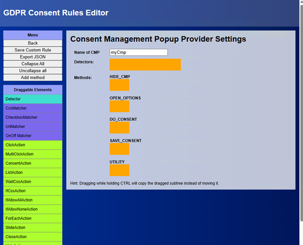 Οι πιο προχωρημένοι χρήστες έχουν τη δυνατότητα να δημιουργούν δικούς τους κανόνες μέσω ενός επεξεργαστή τύπου drag-and-drop, ο οποίος διαχωρίζει τη διαδικασία σε «ανιχνευτές» (για την αναγνώριση των banners) και «μεθόδους» (για τον τρόπο αλληλεπίδρασης με αυτά).