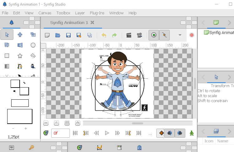 Αυτή η απεικόνιση του καμβά σχεδίασης δικαιολογεί στο ακέραιο ότι το Synfig είναι Vector based. Το πρόγραμμα μας προετοιμάζει για σχεδίαση με ακρίβεια χιλιοστού.