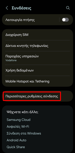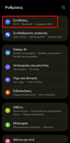 Αρχικά, ανοίγουμε τις ρυθμίσεις της συσκευής και πατάμε “Συνδέσεις”.