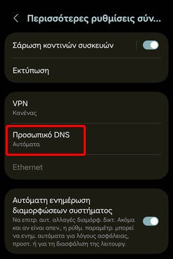 Στη συνέχεια, πατάμε “Προσωπικό DNS”.