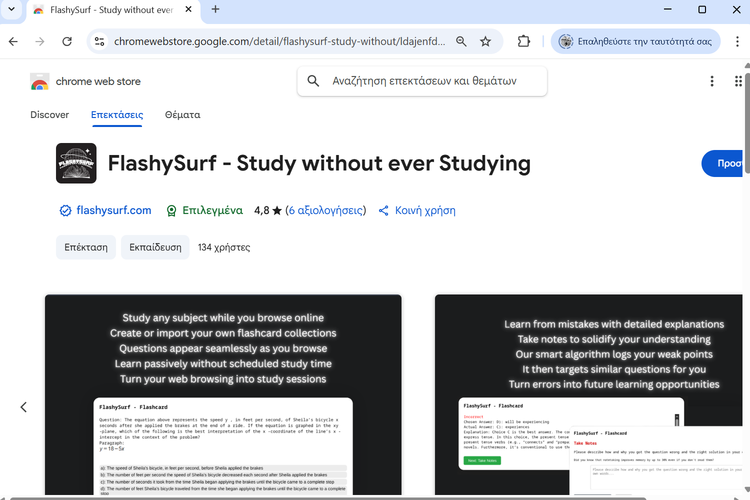 Αρχικά, εγκαθιστούμε την επέκταση FlashySurf στον Chrome, από το κατάστημα επεκτάσεων του browser.