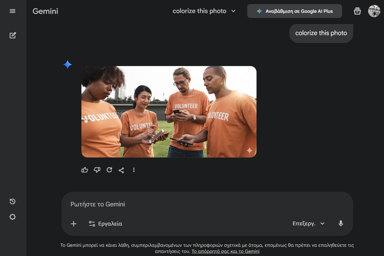 Το Gemini θα αναλύσει την εικόνα και θα τη χρωματίσει.