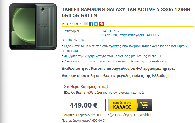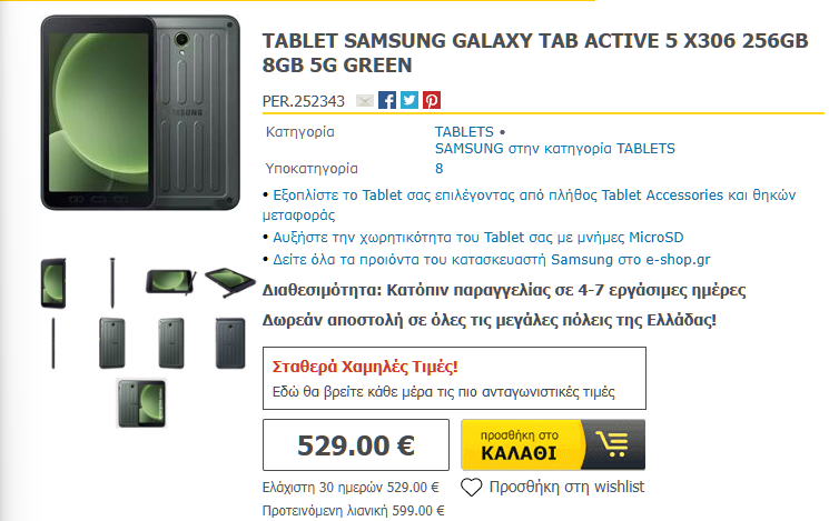 Το Galaxy Tab Active5 5G διατίθεται και σε μεγαλύτερη 5G έκδοση με 8GB / 256GB.