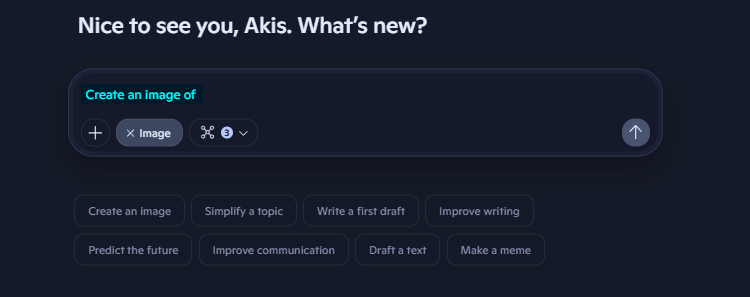 Με τον ίδιο τρόπο, μπορούμε να δημιουργήσουμε ό,τι εικόνα επιθυμούμε. Αρκεί να του δώσουμε τη σχετική εντολή, όπου απλά λέμε τι ακριβώς θέλουμε χωρίς να να προσθέτουμε εκφράσεις τύπου “δημιούργησε” κ.α.. Έχει έτοιμο στην αρχή της εντολής το “Create an image of”.
