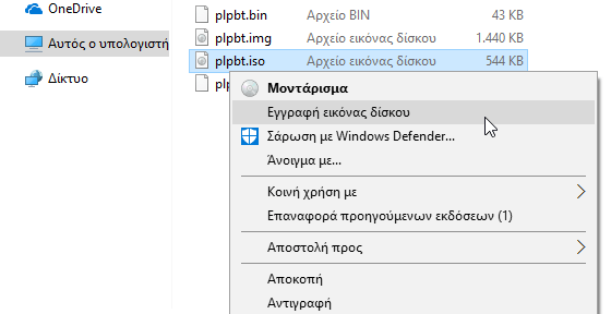 Στο φάκελο θα βρούμε δύο αρχεία plpbt. Το αρχείο των 1440KB είναι αρχείο τύπου .img, ενώ το μικρότερο αρχείο των 554KB είναι .iso.