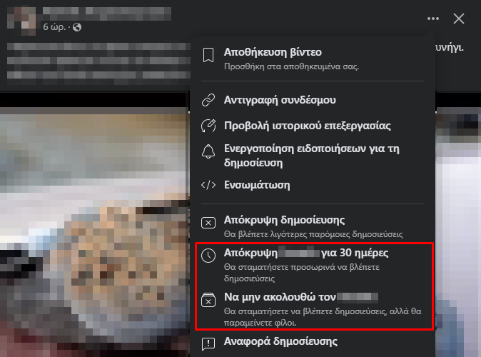 Εάν διαλέξουμε την πρώτη επιλογή, δεν θα βλέπουμε τις δημοσιεύσεις του χρήστη για τις επόμενες 30 ημέρες. Μετά το πέρας των 30 ημερών, το Facebook θα απενεργοποιήσει αυτή τη ρύθμιση και εμείς θα βλέπουμε ξανά όσα δημοσιεύει.