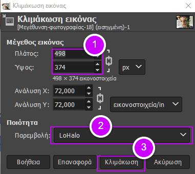 Στη συνέχεια, πατάμε διαδοχικά στην Εικόνα > Κλιμάκωση εικόνας.