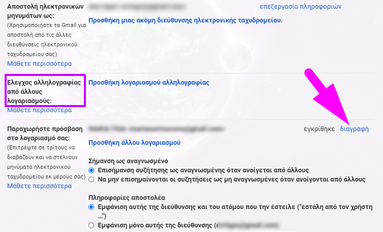 Αν το θελήσουμε, μπορούμε να κάνουμε διακοπή της εισαγωγής των μηνυμάτων του παλιού ηλεκτρονικού ταχυδρομείου. Απλά κάνουμε κλικ στο κουμπί “Διαγραφή” του λογαριασμού από τον οποίον θέλουμε να σταματήσουμε να λαμβάνουμε τα email.