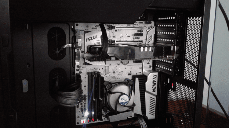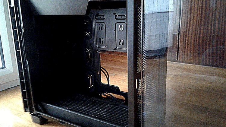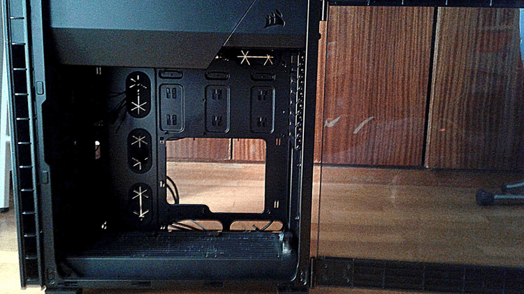 Εδώ φαίνεται ξεκάθαρα η διάταξη inverted ATX, καθώς στα περισσότερα κουτιά ο επεξεργαστής και οι μνήμες βρίσκονται στο επάνω μέρος.