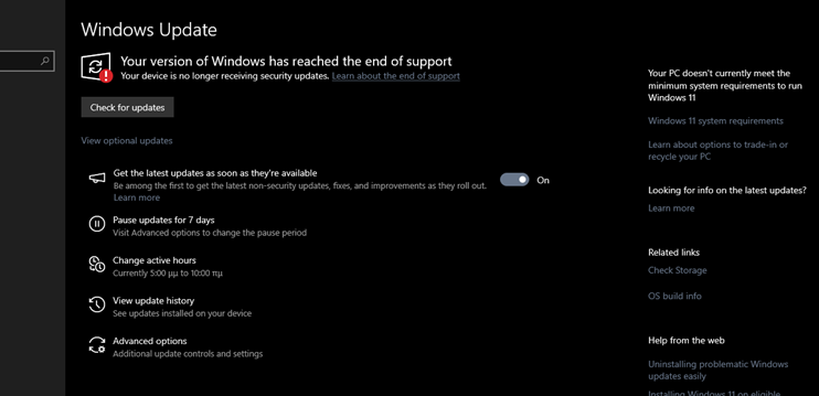 Μετά τις 14/10/25, ίσως βλέπουμε μια ειδοποίηση “Your version of Windows has reached the end of support”. Εμφανίζεται σε όλα τα Windows 10 (Home, Pro, Enterprise κ.λπ.) μετά την 14η Οκτωβρίου 2025, ανεξάρτητα από το αν έχουν ενεργοποιηθεί οι ESU.