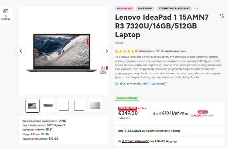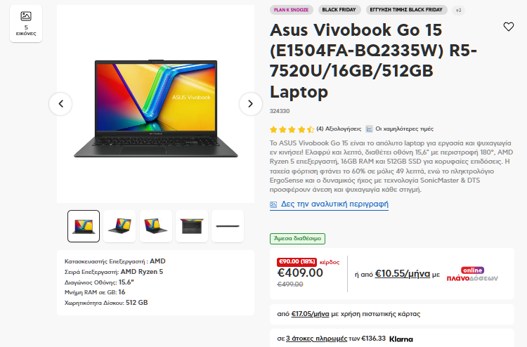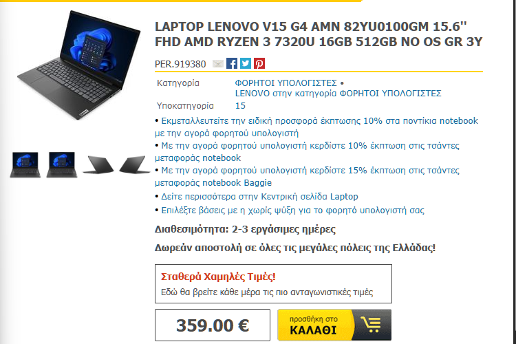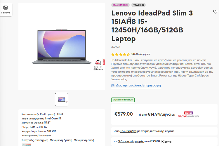 Αγορά laptop €379 έως €551 με i3 για Internet, ταινίες, Office