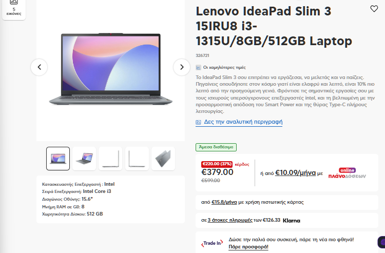Αγορά laptop €369 έως €599 με i3 για Internet, ταινίες, Office