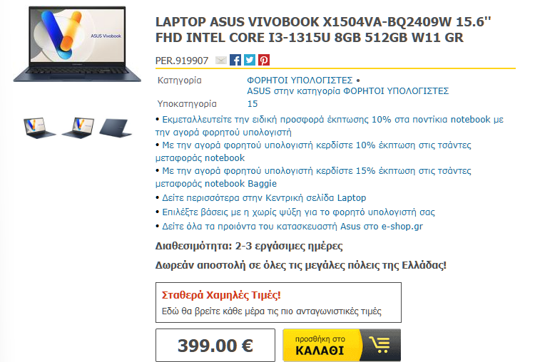 Αγορά laptop €379 έως €551 με i3 για Internet, ταινίες, Office