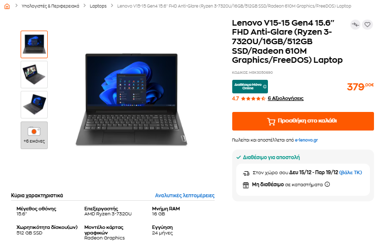 Αγορά laptop με AMD Ryzen €379 έως €2.899