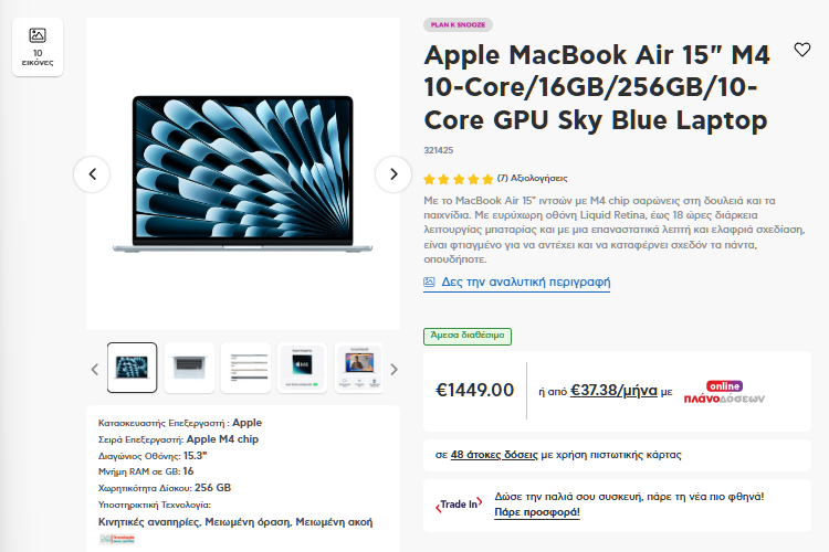 €1.449 MacBook Air / M4 10-Core / 16GB / 256GB SSD/ 15.3″
