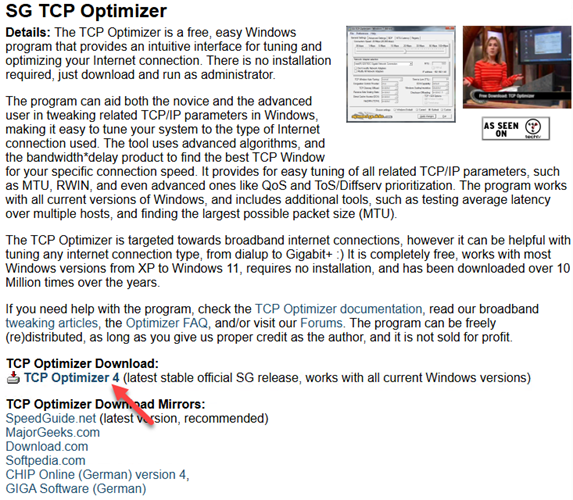 Τη στιγμή που γράφονται αυτές οι γραμμές, η νεότερη έκδοση είναι το TCP Optimizer 4.1.1 και κυκλοφόρησε το 2021.