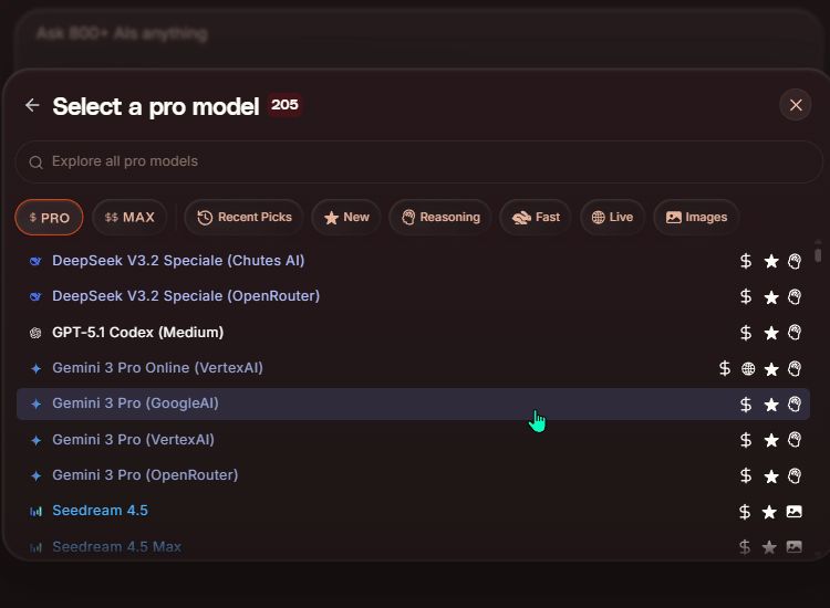 Για παράδειγμα, μπορούμε να αξιοποιήσουμε παράλληλα στο ίδιο παράθυρο για να έχουμε ταυτόχρονες απαντήσεις με μια μόνο προτροπή, όλα τα premium chatbots (συν τα Pro/Max Ai models), που διατίθενται μόνο επί πληρωμή.