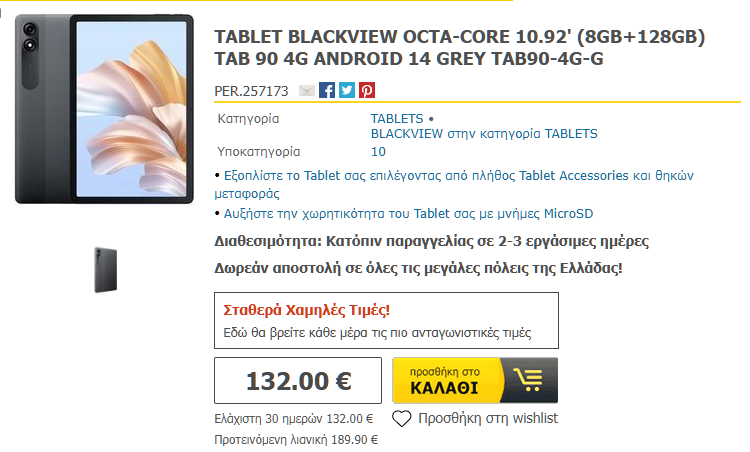 Το 4G Blackview Tab 90 έρχεται με 8GB φυσικής RAM και επιπλέον 16GB virtual RAM, μαζί με 128GB αποθηκευτικό χώρο. Διαθέτει κύρια κάμερα 13MP της Samsung, και μπροστινή 8MP, καθώς και μπαταρία 5200 mAh.