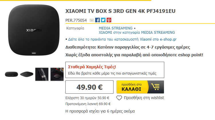 - Στο E-shop: XIAOMI TV BOX S 3RD GEN 4K PFJ4191EU