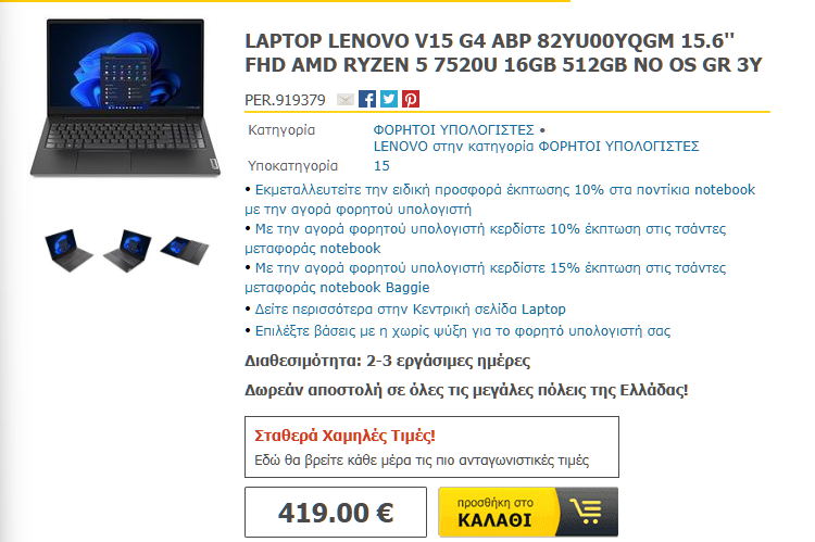 Το Lenovo διαθέτει τον Ryzen 5-7520, 16GB DDR5 μνήμη RAM στα 5500 MHz, 512GB SSD, και χαμηλό βάρος στα 1,63 kg.
