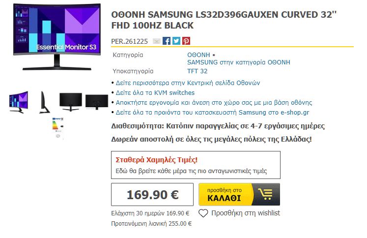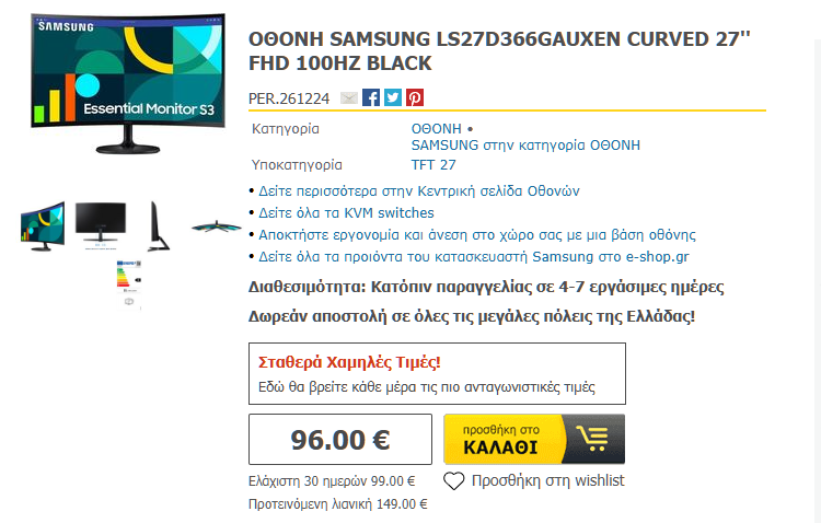 - Στο E-shop: SAMSUNG LS27D366GAUXEN CURVED 27” FHD 100HZ