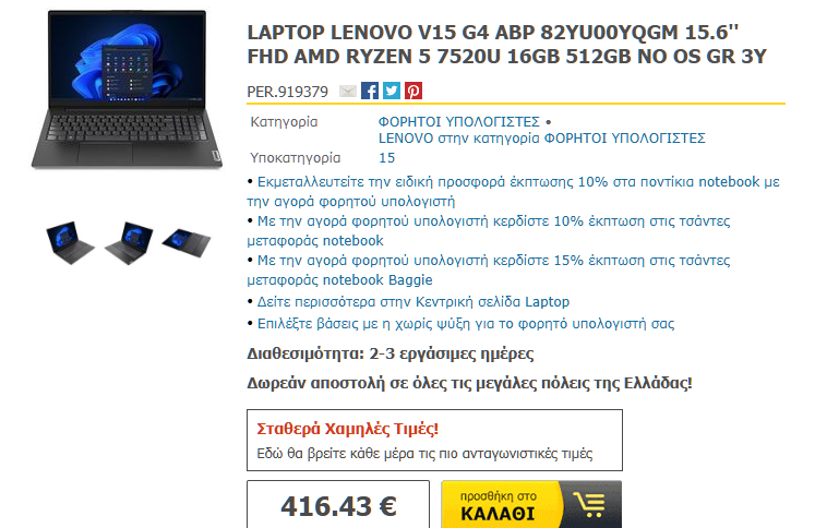 Το Lenovo διαθέτει τον Ryzen 5-7520, 16GB DDR5 μνήμη RAM στα 5500 MHz, 512GB SSD, και χαμηλό βάρος στα 1,63 kg.