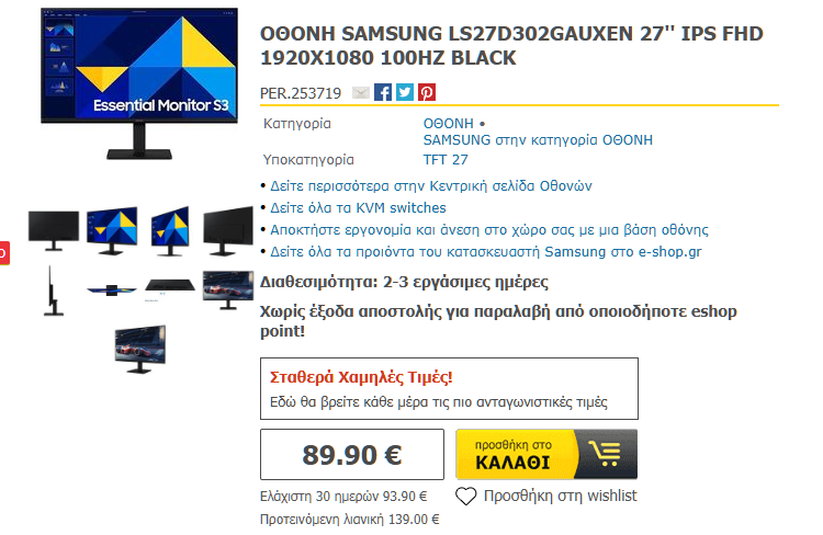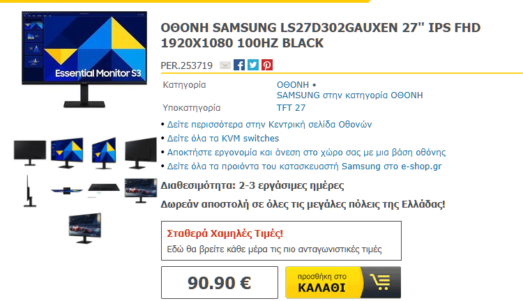 - Στο E-shop: SAMSUNG LS27D302GAUXEN 27” IPS