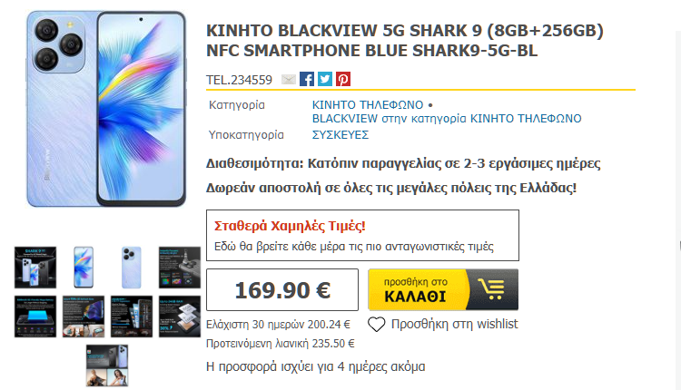 - Στο E-shop: BLACKVIEW 5G SHARK 9 (8GB+256GB