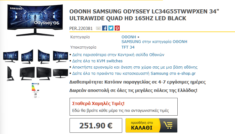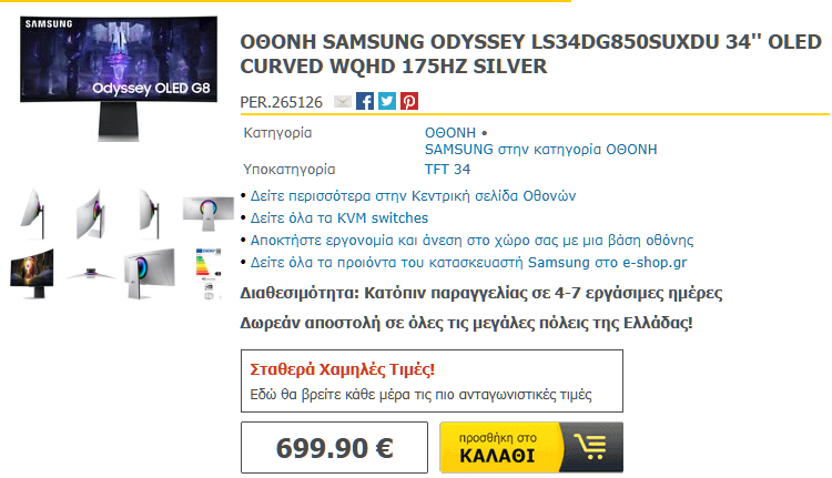 - Στο E-shop: SAMSUNG ODYSSEY LC34G55TWWPXEN 34″