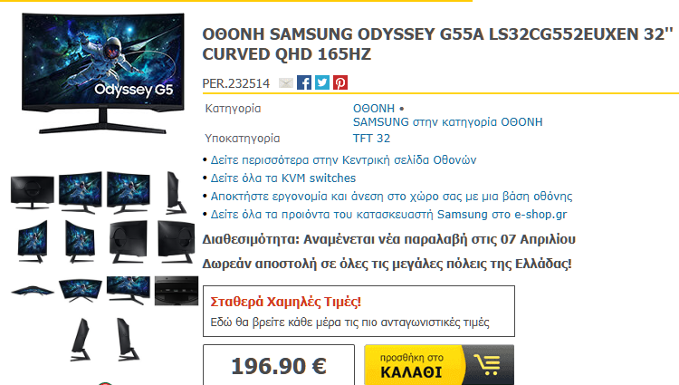 - Στο E-shop: SAMSUNG ODYSSEY G55A LS32CG552EUXEN 32′‘