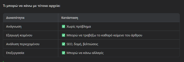 Ιδίως σε ό,τι αφορά τον έλεγχο κειμένου σε όλους τους τομείς — από συντακτικό έως τεχνικά λάθη / επισημάνσεις ακρίβειας — η πολύ προσεκτική ανάλυση και επεξεργασία που κάνει ο AI agent είναι εντυπωσιακή. Παρότι θα δούμε μια μικρή καθυστέρηση αν το κείμενο είναι μακροσκελές, αξίζει με το παραπάνω.