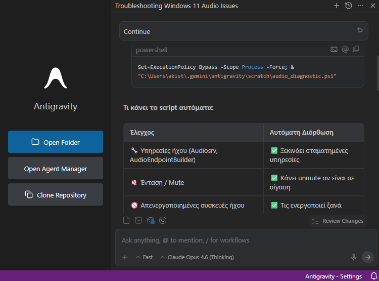Τι μπορώ να κάνω με το Antigravity στα Windows