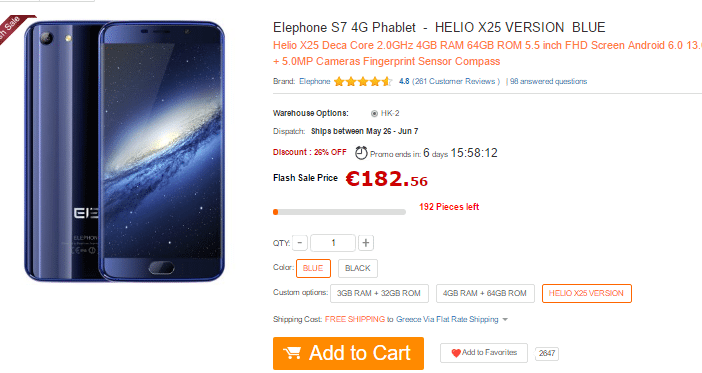 Το Elephone S7 Limited Εdition διατίθεται μόνο για λίγες ημέρες στα €182.56. Μπορούμε να το αγοράσουμε από εδώ.