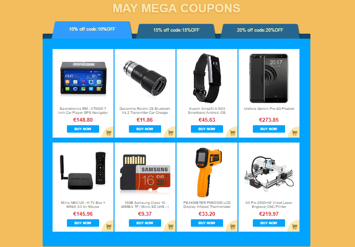 Αυτή η κατηγορία προσφορών στις εκπτώσεις του Gearbest καλύπτει μια γκάμα προϊόντων από διάφορα είδη τεχνολογίας, που έχουν περαιτέρω έκπτωση με χρήση κουπονιών.