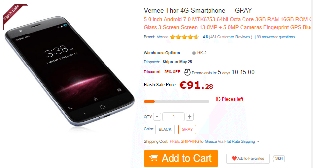 Το Vernee Thor κοστίζει €91.28 μόνο για λίγες ημέρες και μπορούμε να το αγοράσουμε από εδώ.