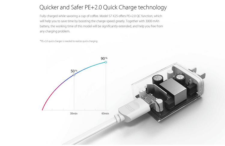 Η μπαταρία του Elephone S7 είναι στα 3000mAh , και υποστηρίζει την ταχύτατη φόρτιση που ανέρχεται στο 50% μέσα σε μισή ώρα, και το 90% σε εξήντα λεπτά.