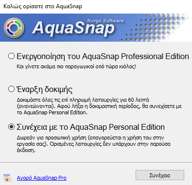 Αξίζει να σημειωθεί πως το AquaSnap διαθέτει πλήρως εξελληνισμένο περιβάλλον.