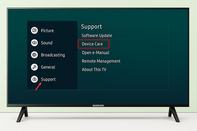 Για να την εκτελέσουμε, πατάμε το κουμπί Home στο τηλεχειριστήριο, μεταβαίνουμε στις Ρυθμίσεις (Settings), επιλέγουμε Υποστήριξη (Support) και στη συνέχεια Φροντίδα Συσκευής (Device Care), ή κάτι σχετικό ανάλογα την παλαιότητα του μοντέλου.
