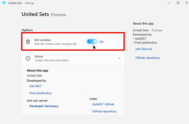 Το United Sets είναι μια δωρεάν, ανοιχτού κώδικα εφαρμογή που μας επιτρέπει να ομαδοποιούμε πολλαπλά παράθυρα προγραμμάτων, ως καρτέλες μέσα σε ένα ενιαίο παράθυρο.